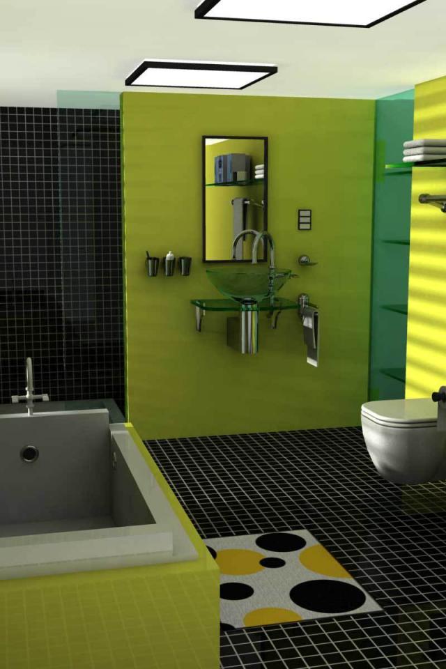 » Обои Зеленые панели в ванной