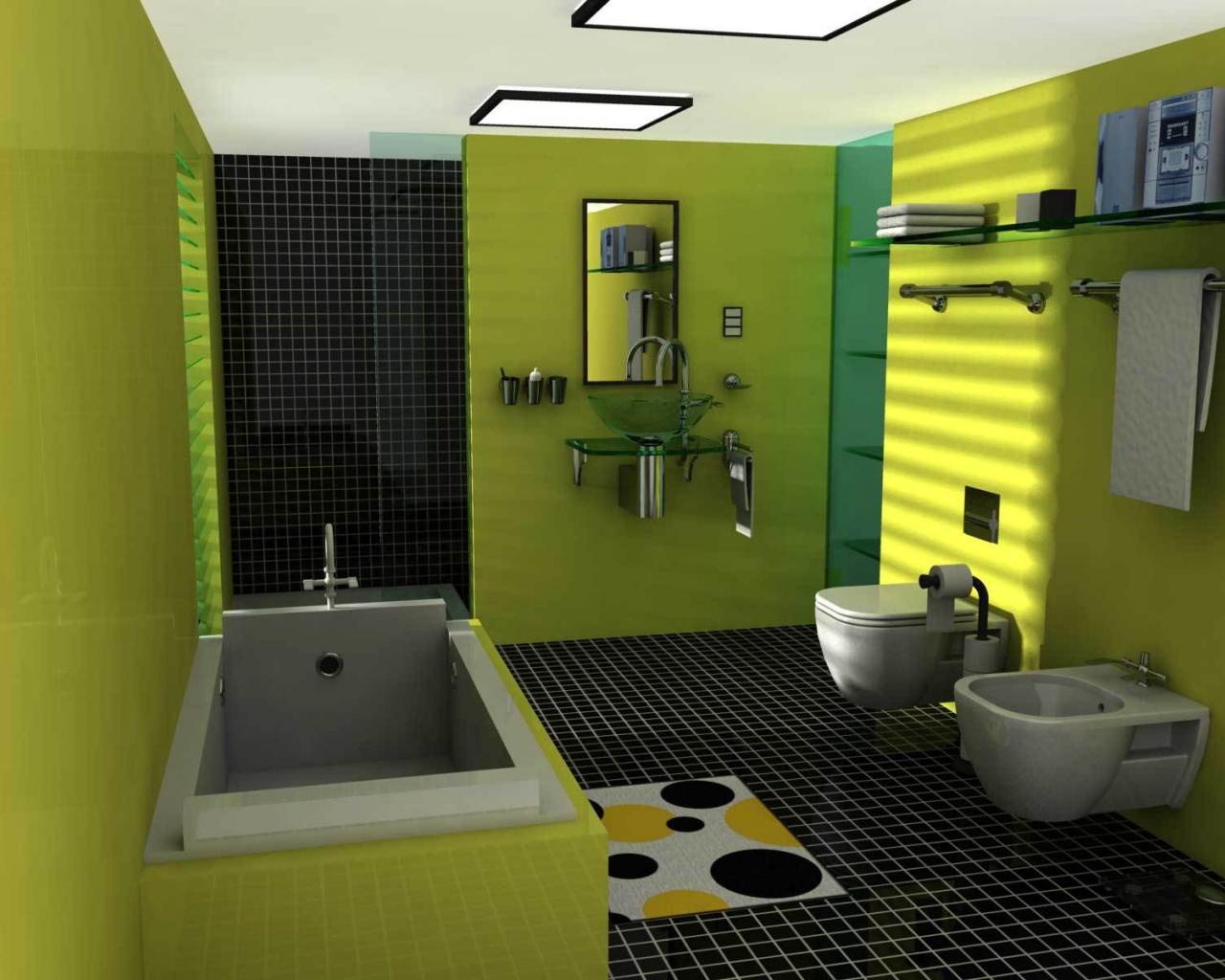Обои Зеленые панели в ванной