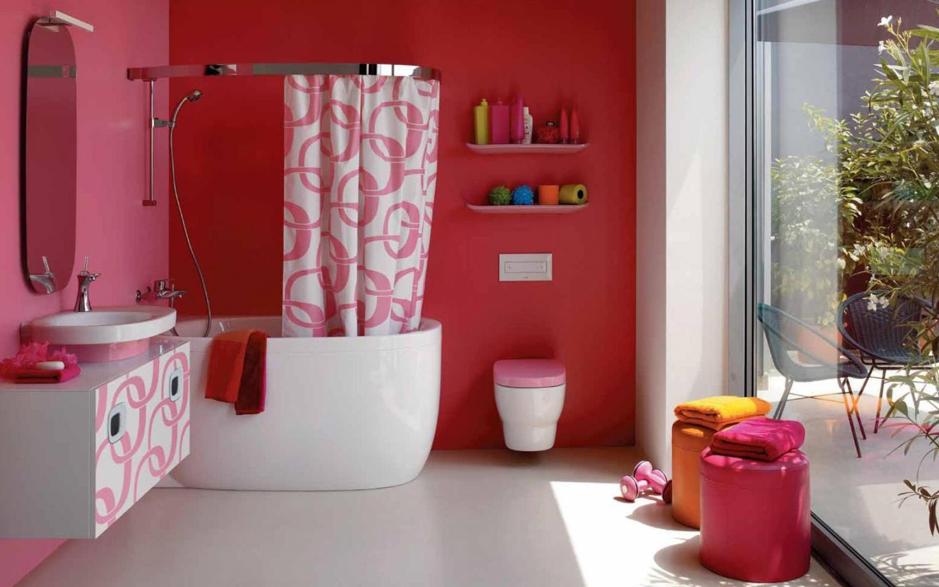 Обои Ванная комната в красных тонах