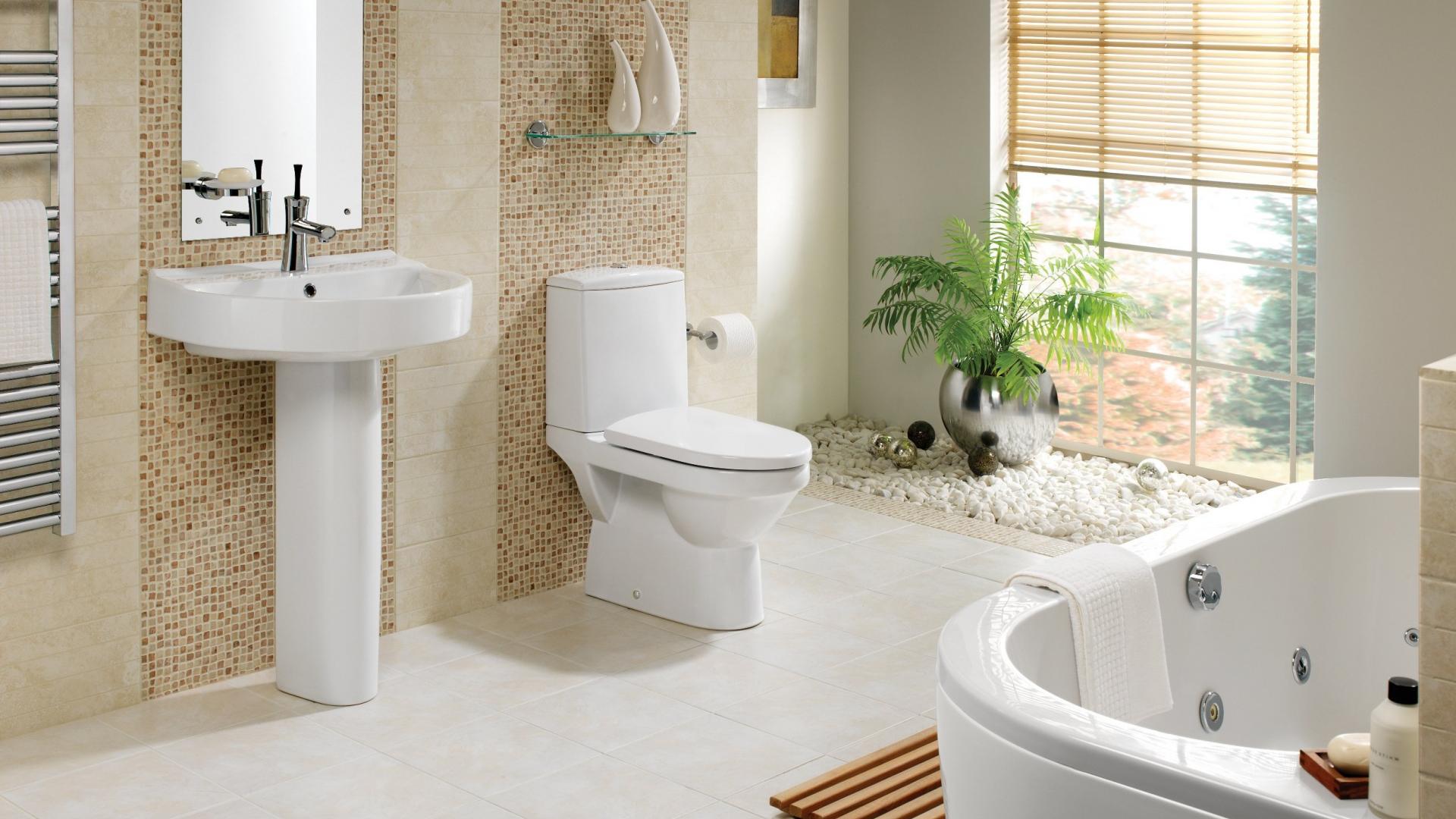 Обои Кремовое оформление ванной комнаты