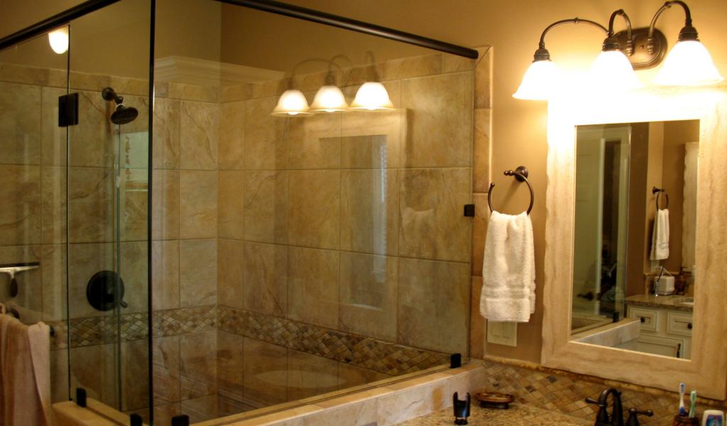 Обои Просторная душевая кабина в ванной