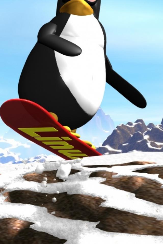 Обои Пингвин Линукс, серый фон