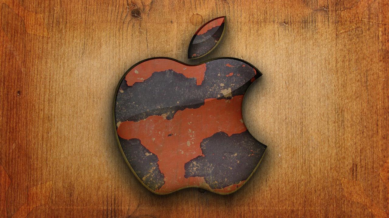 Обои Apple на деревянном фоне
