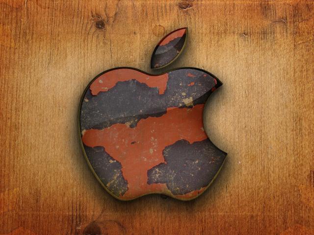Обои Apple на деревянном фоне