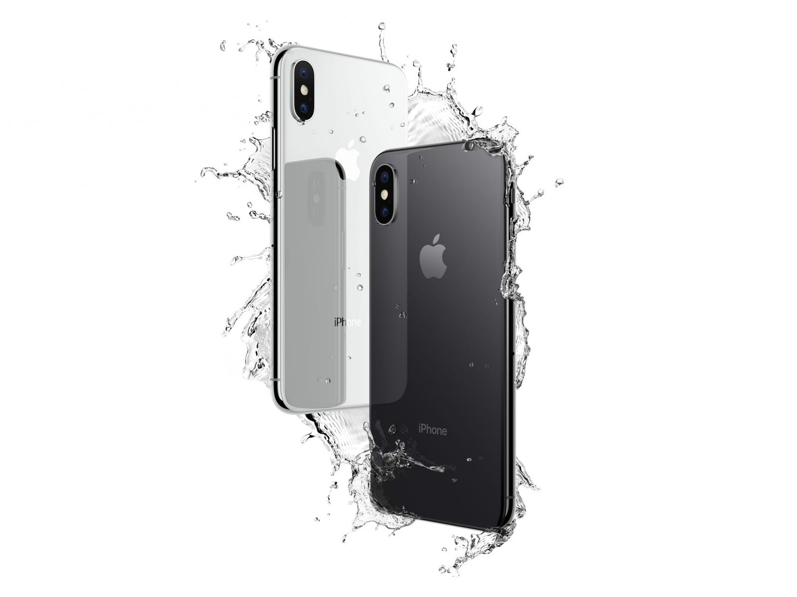 Обои Тонкий смартфон iPhone X в каплях воды на белом фоне
