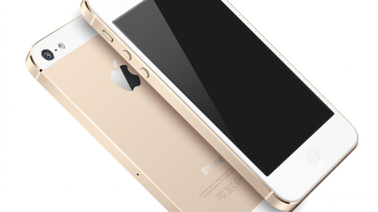 Обои Новый Iphone 5S цвет шампань на сером столе
