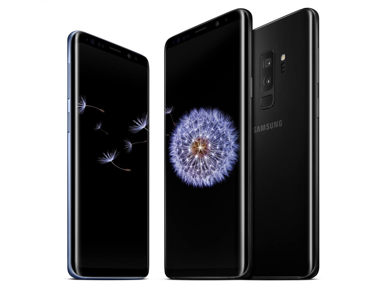 Обои Черный смартфон Samsung Galaxy S9 на белом фоне