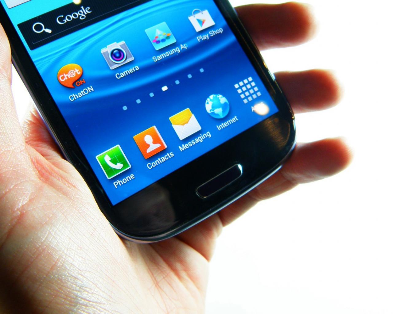 Обои Samsung Galaxy S3 в руке на белом фоне