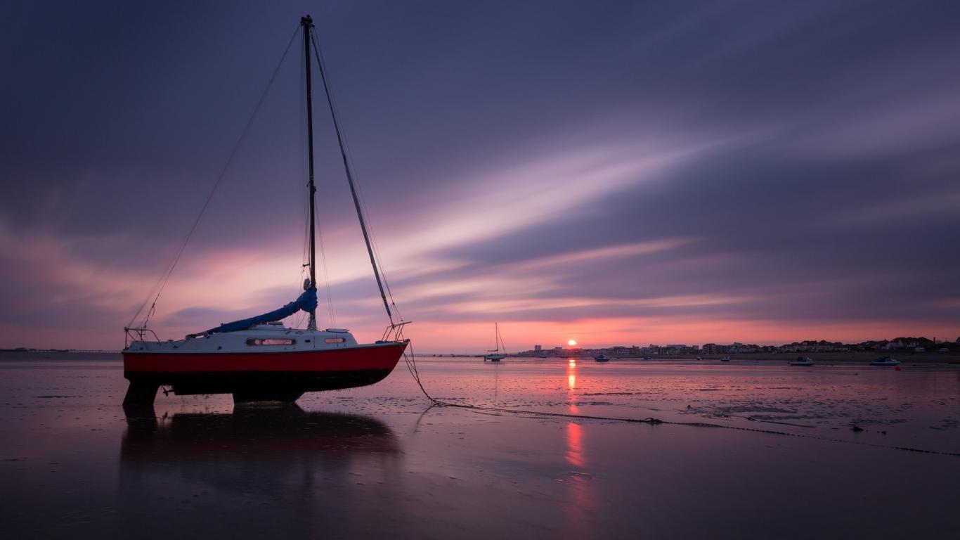 Обои Катер на суше во время отлива