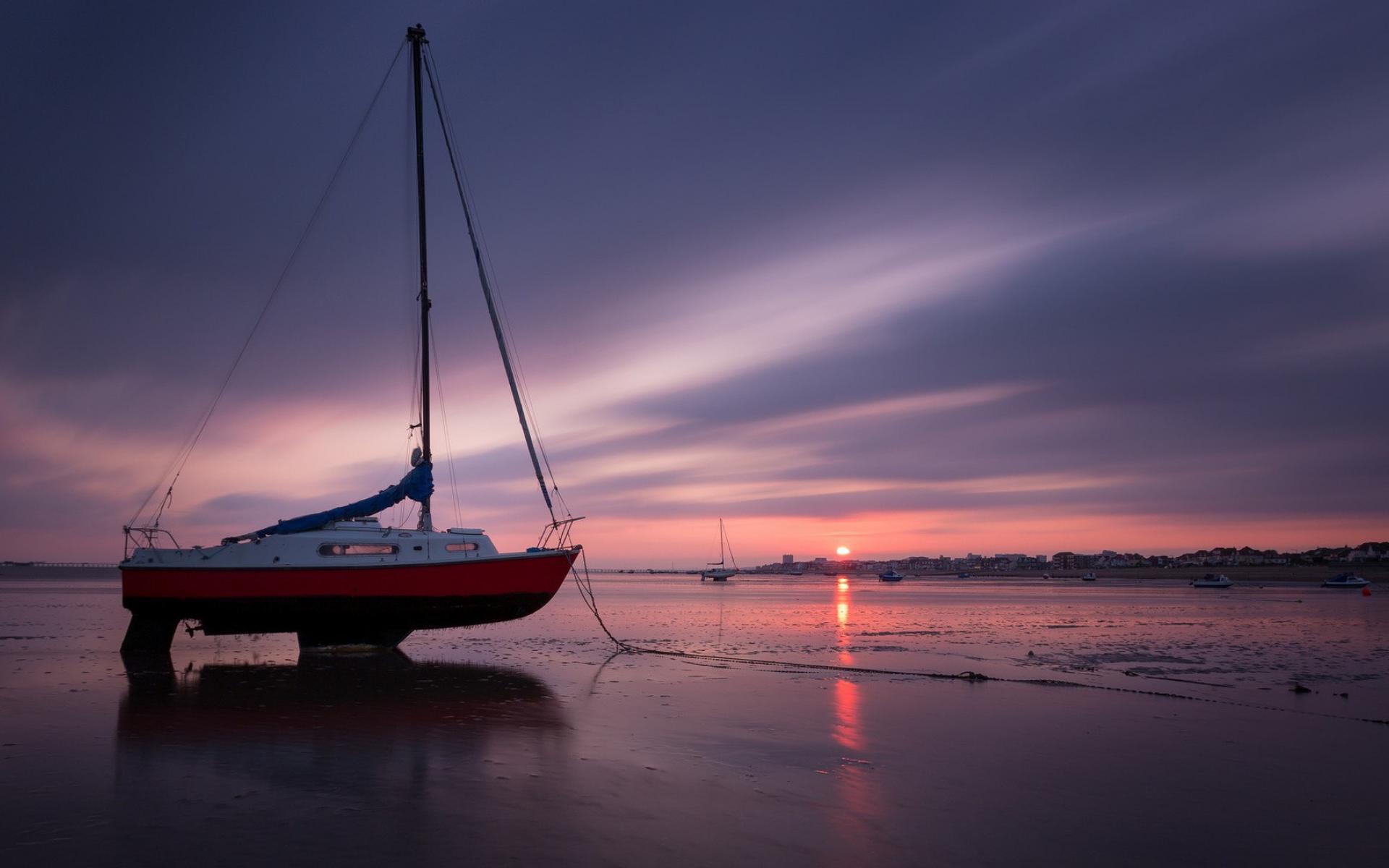 Обои Катер на суше во время отлива