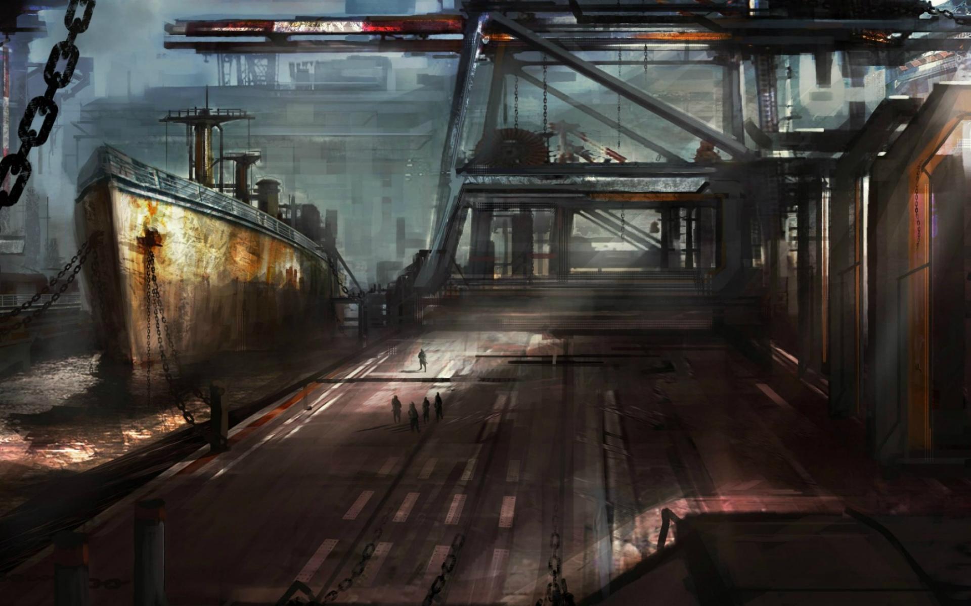 Обои Старый корабль в ремонтном доке