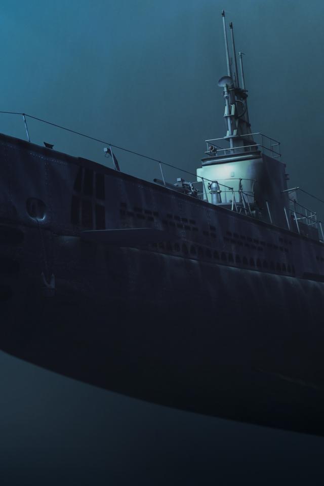 Обои Подводная лодка среди мин