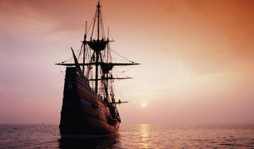 » Обои Парусник идет на закат солнца