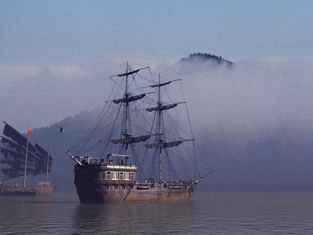Обои Парусники в тумане