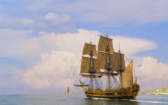 Обои Парусный корабль у маяка
