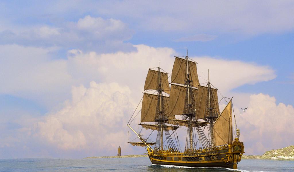Обои Парусный корабль у маяка