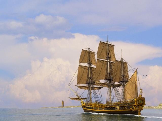 Обои Парусный корабль у маяка