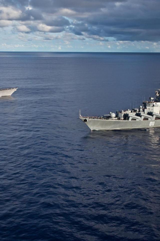 Обои Встреча военных кораблей в море