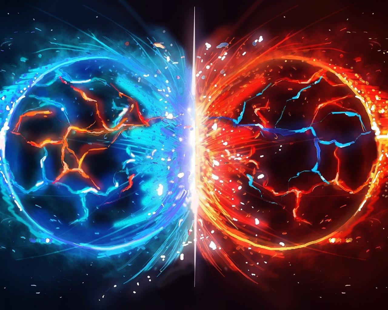 Обои Столкновение огненой и ледяной планет
