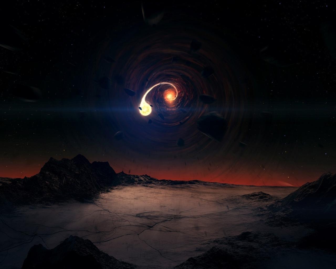 Обои Картина разрушения в черной дыре
