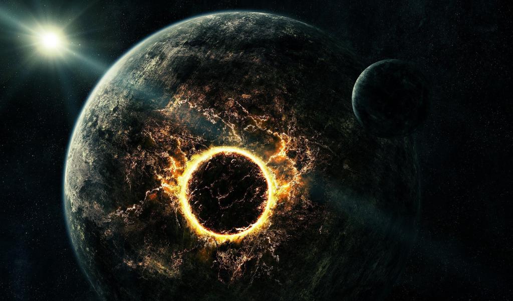 Обои Спутники врезаются в планету