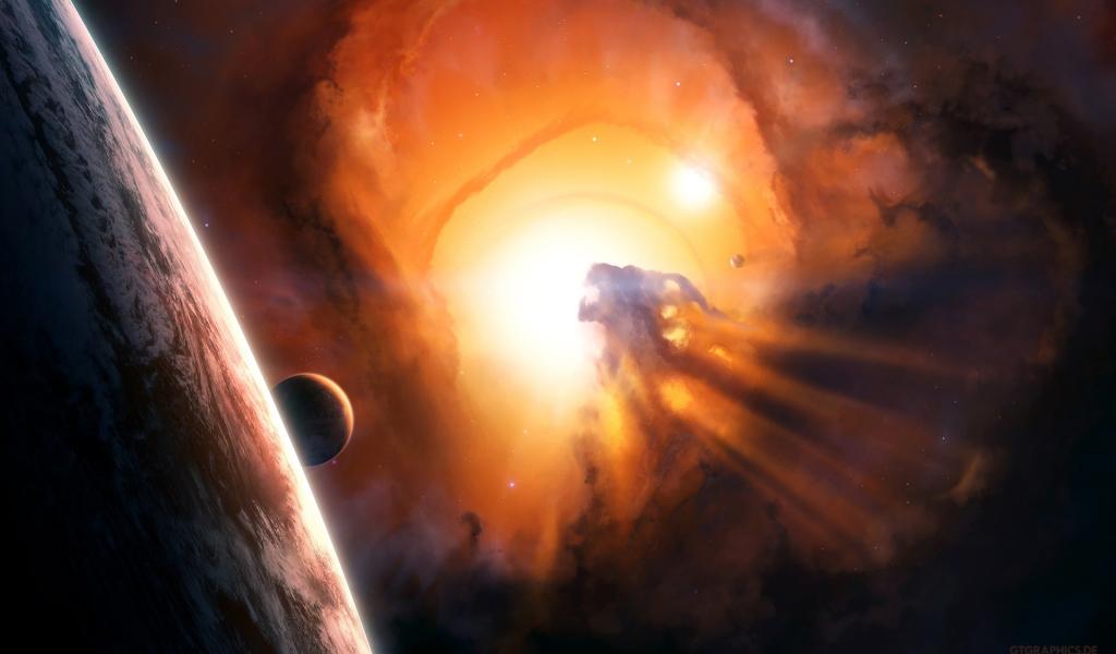 Обои Вспышка звезды в планетной системе