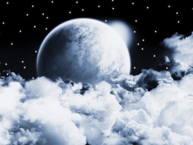 Обои Серая планета в облаках на фоне звезд