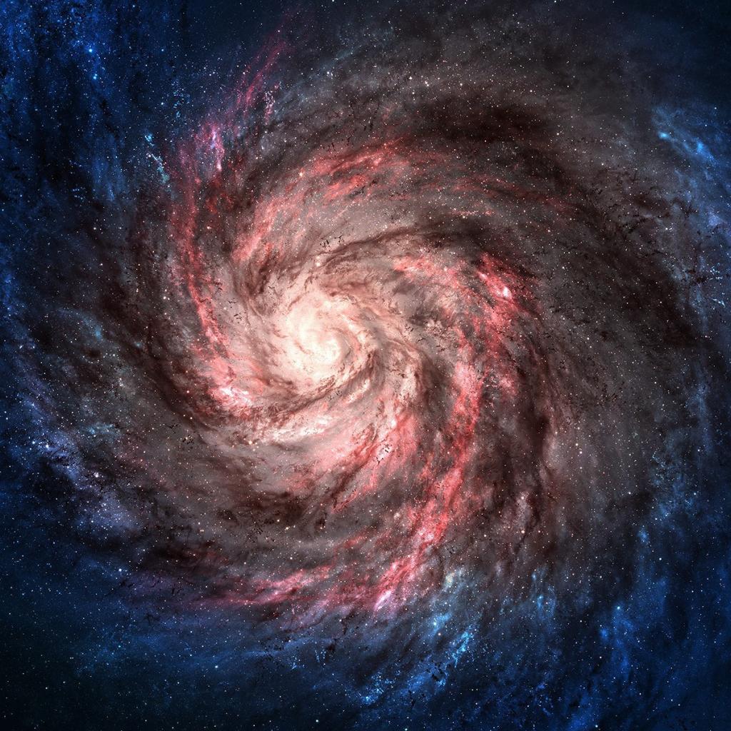 Обои Розовая спиральная галактика с голубыми краями