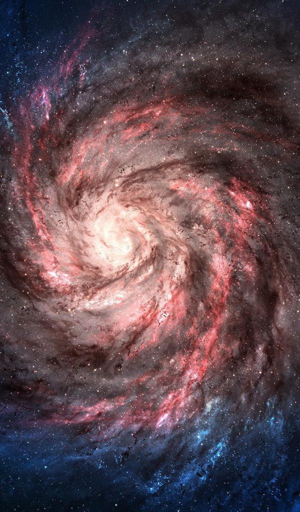 Обои Розовая спиральная галактика с голубыми краями