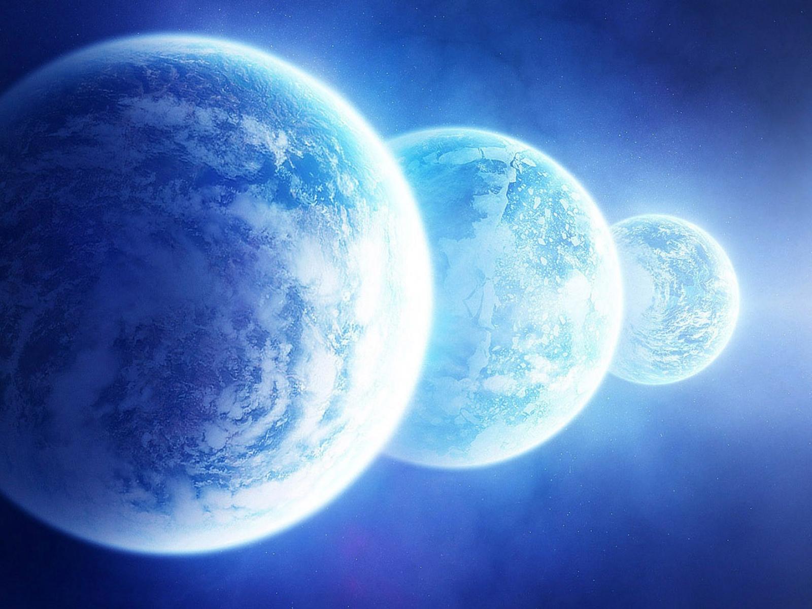 Обои Три одинаковых голубых планеты