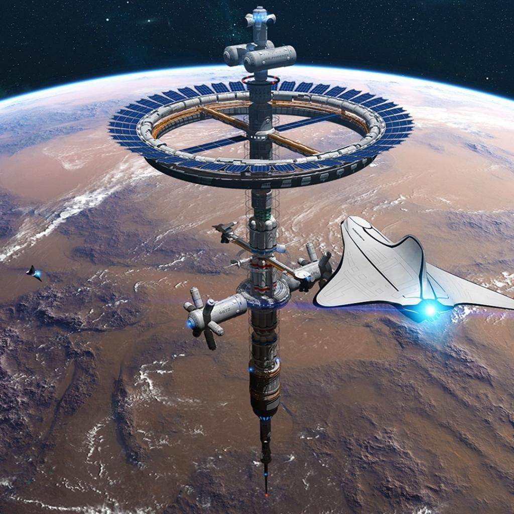 Обои Космическая станция над Марсом