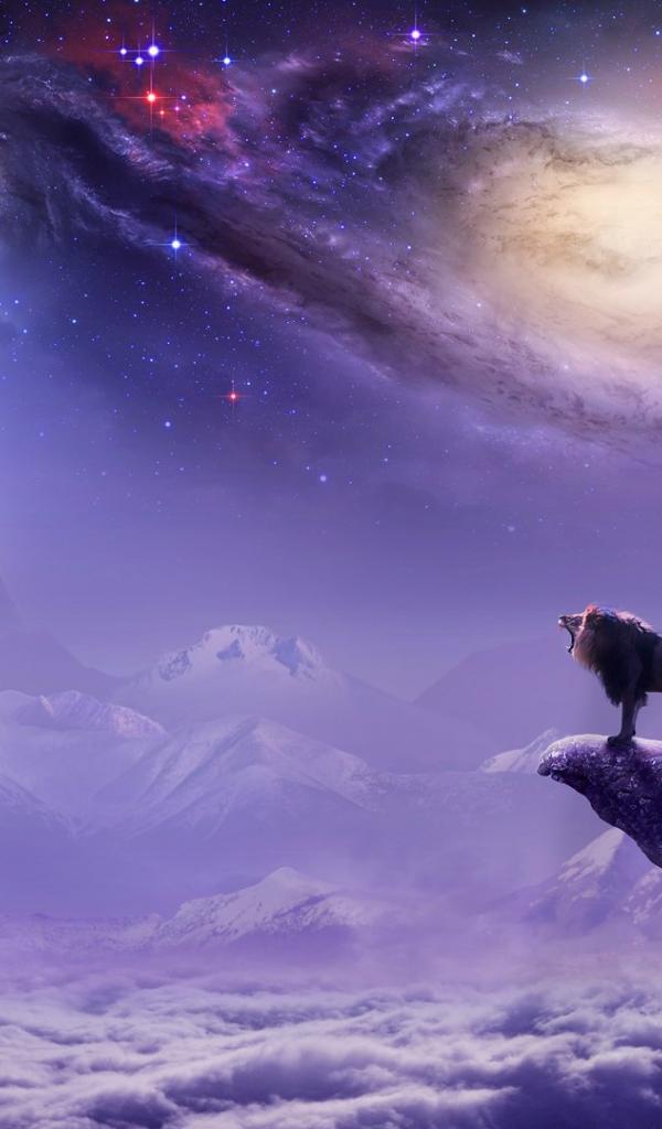 Обои Лев на фоне галактики