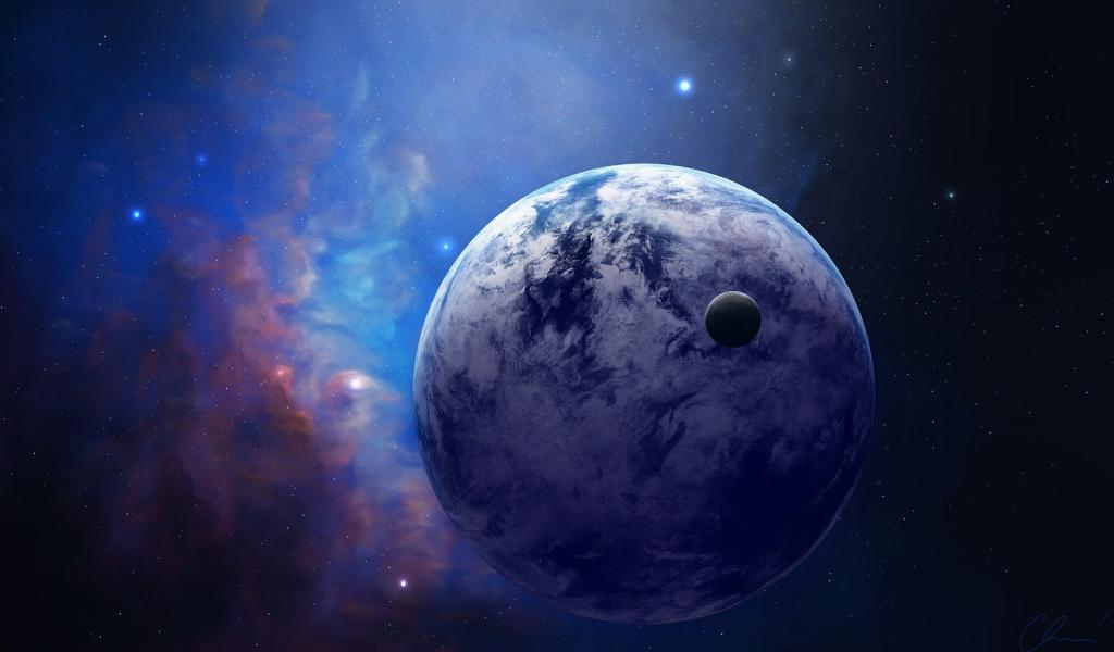 Обои Планета со спутником в космосе