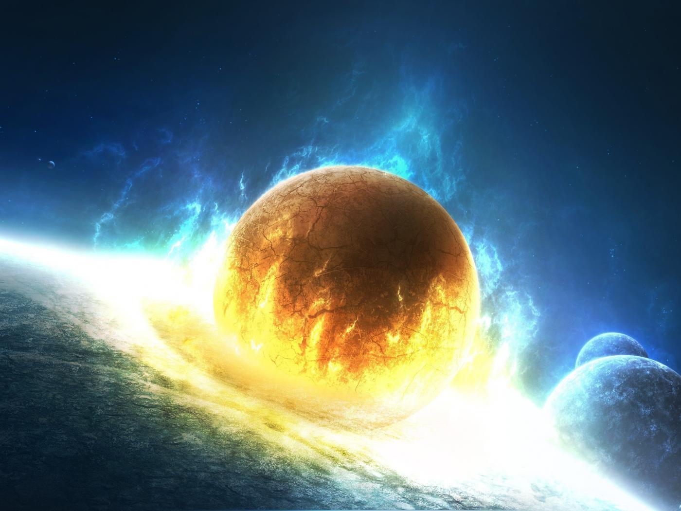 Обои Удар маленькой планеты о большую