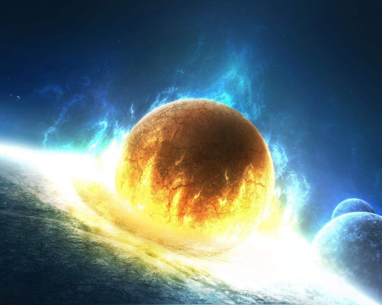 Обои Удар маленькой планеты о большую