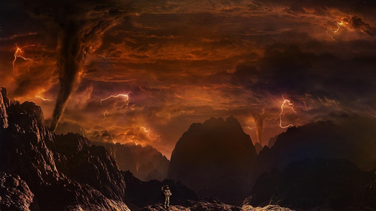 Обои Космонавт на огненной планете