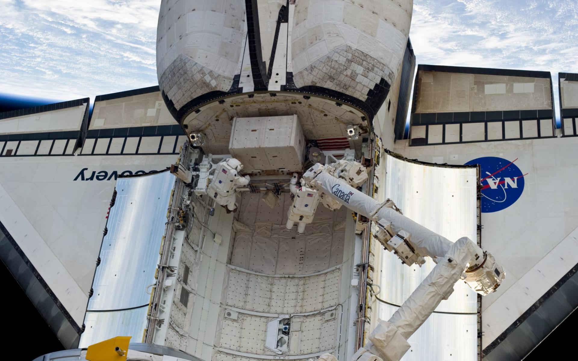 Обои Астронавты в открытом космосе