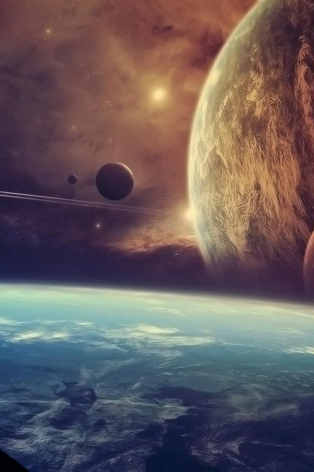 Обои Одинокий человек, Планеты, Звезды
