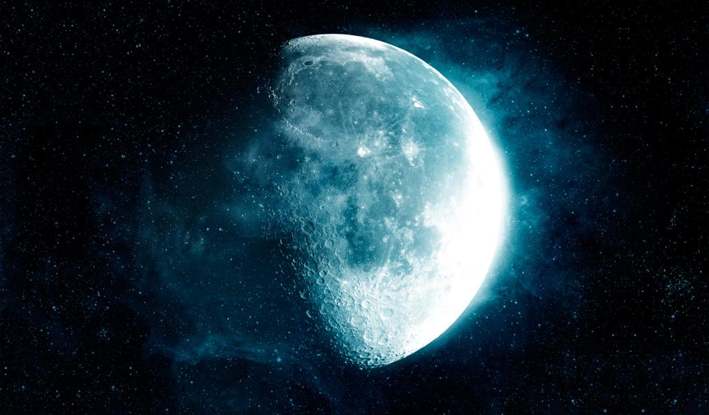 Обои Черный фон, Туман, Луна, Звезды