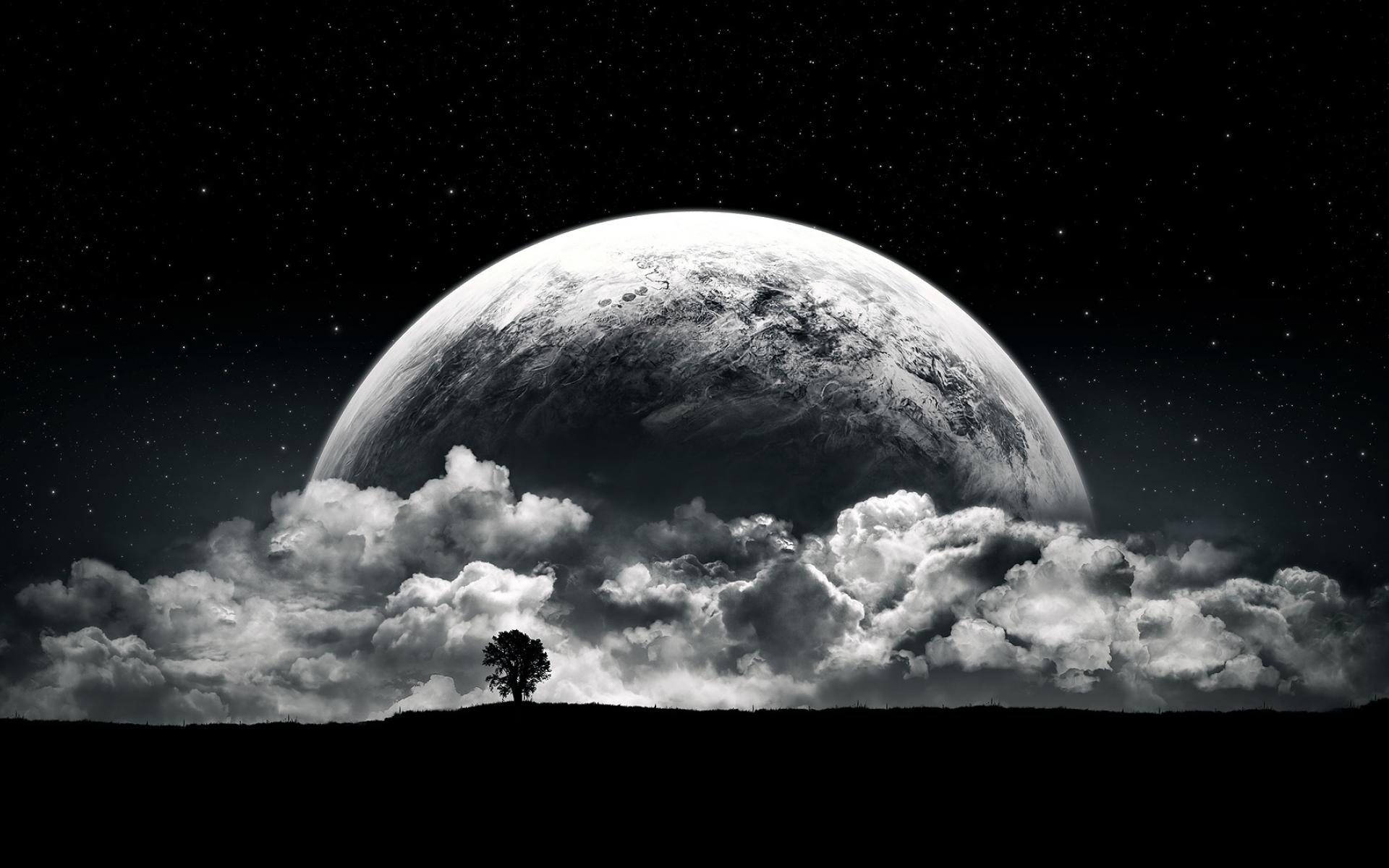 Обои Деревья, Луна, Планеты, Звезды