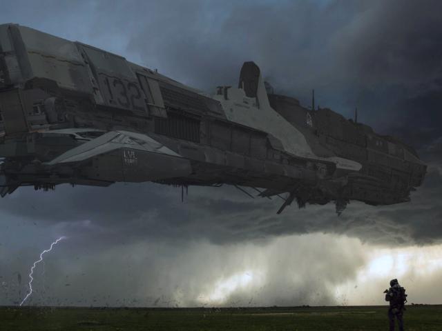 Обои Космический корабль садится на чужую планету