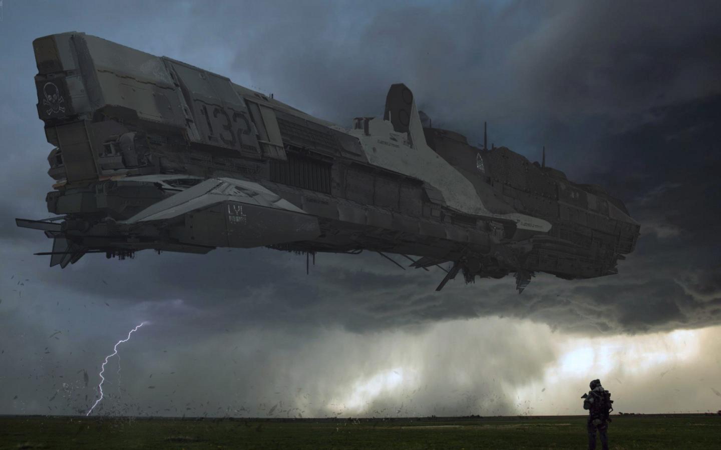 Обои Космический корабль садится на чужую планету