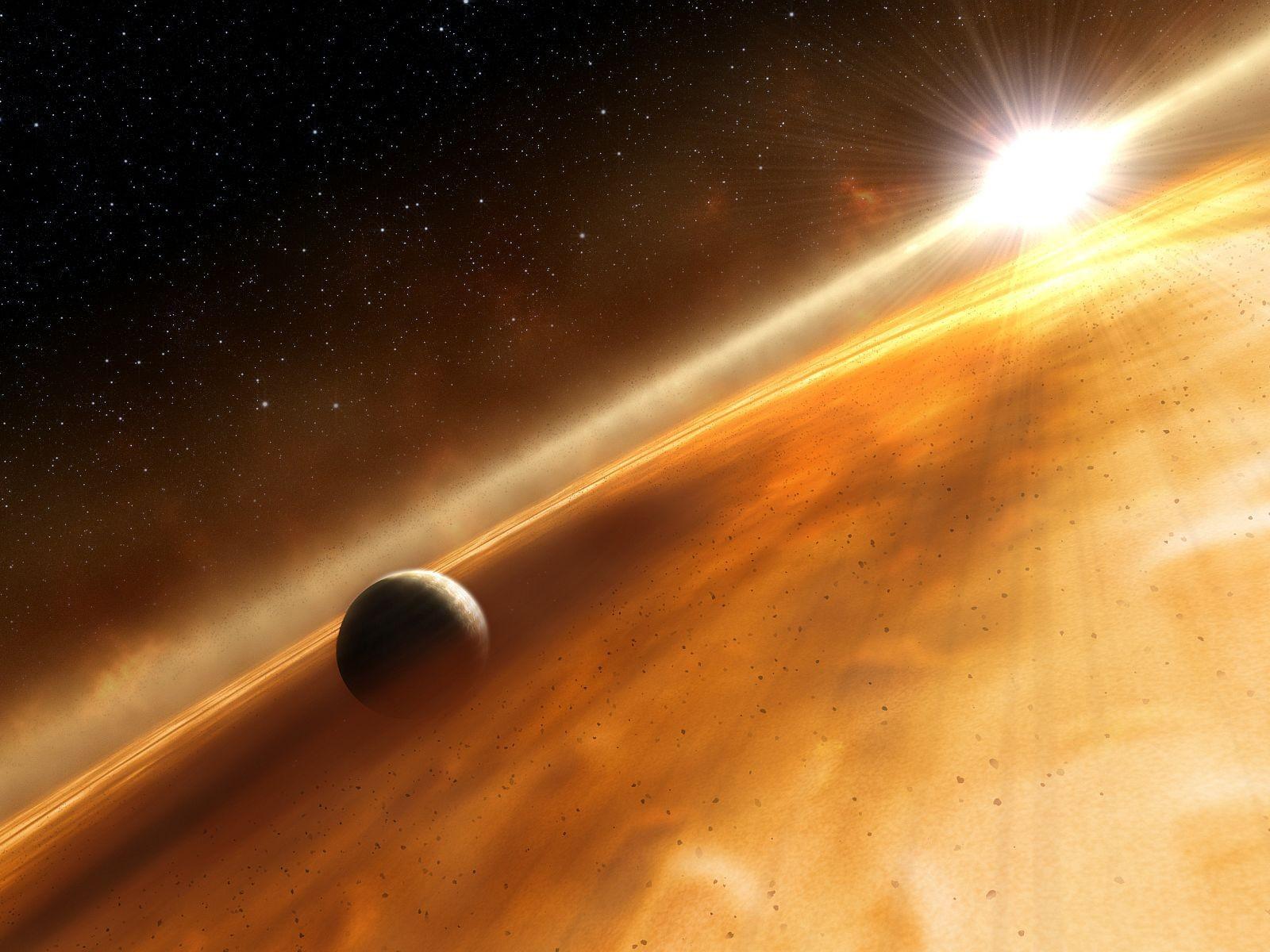 Обои Планета пробивается сквозь туманность