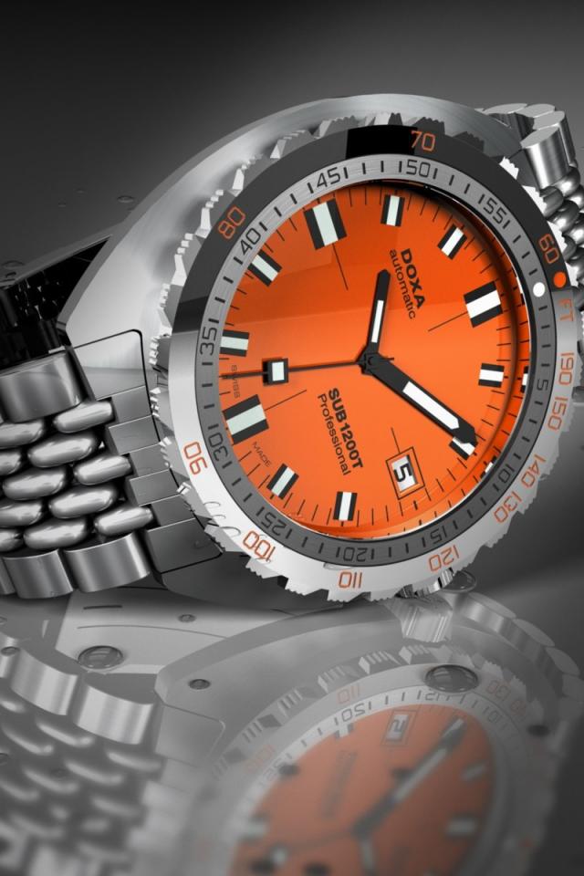 Обои Часы Докса с оранжевым циферблатом