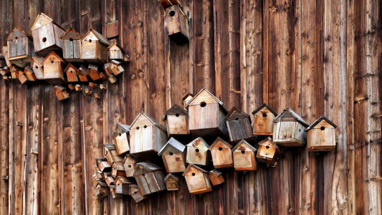 Обои Скворечники на деревянной стене