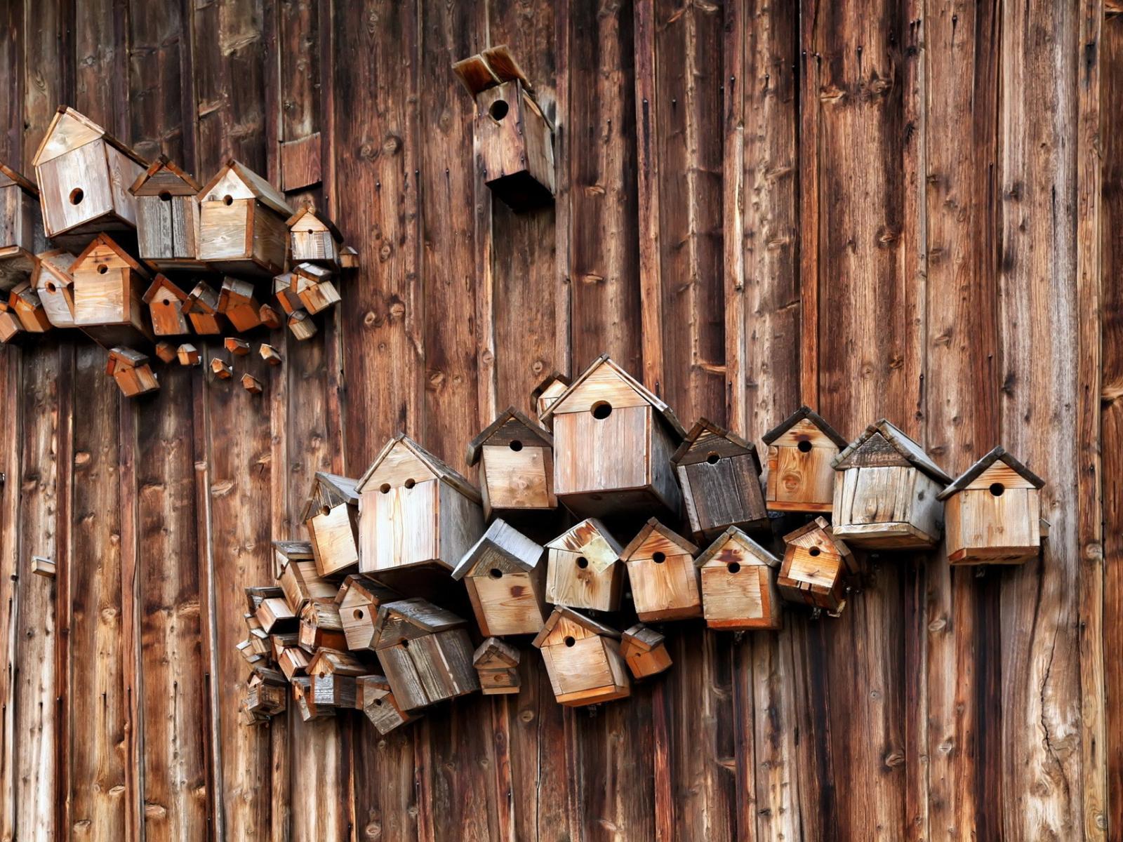 Обои Скворечники на деревянной стене