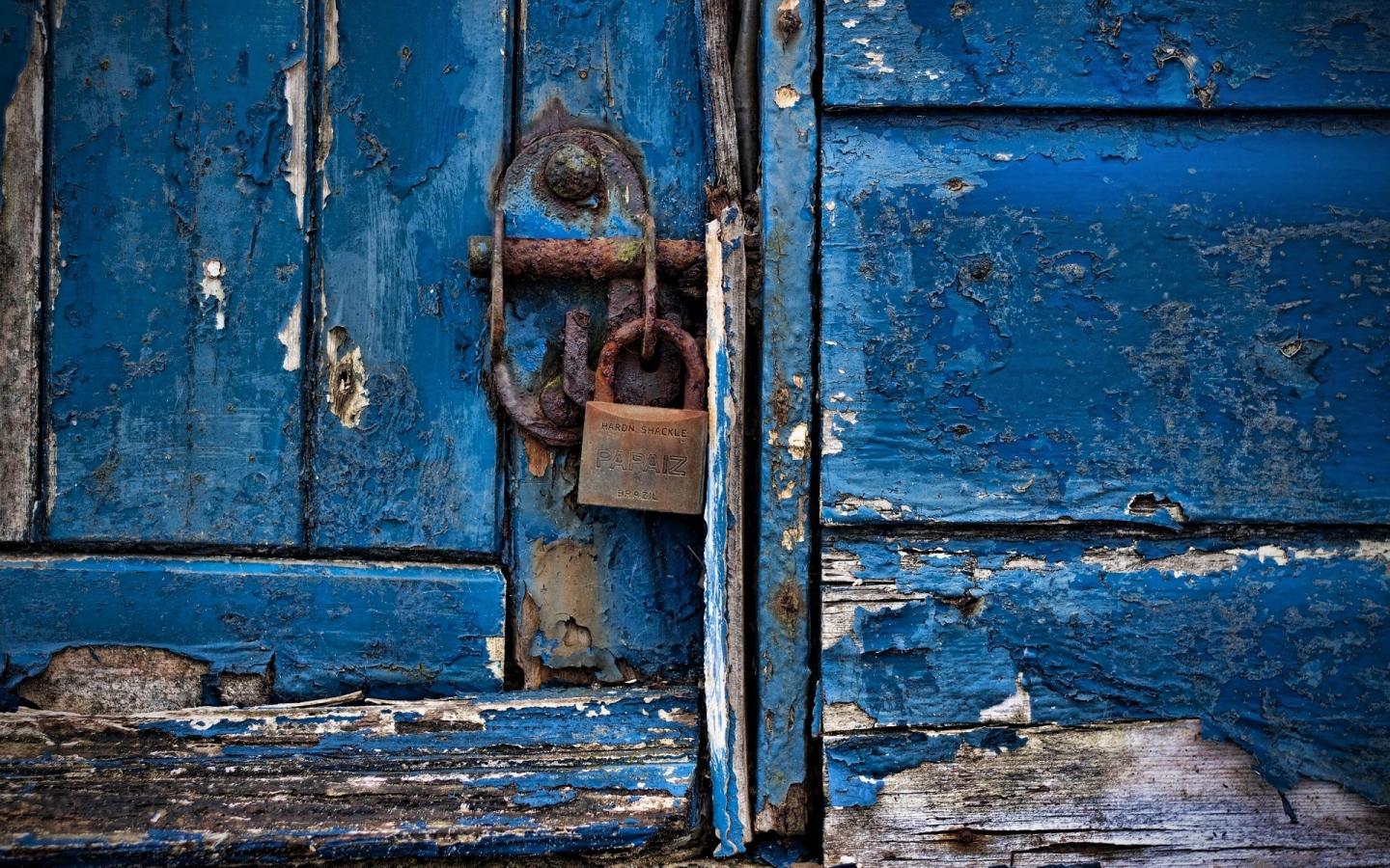 Обои Ржавый замок на деревянной двери