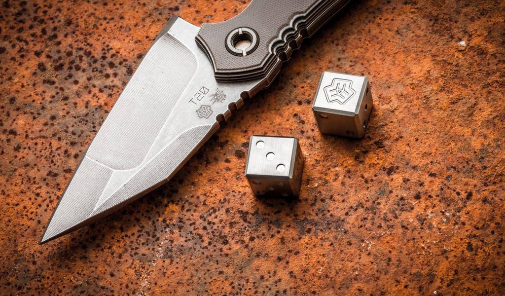 Обои Нож и кубики для игры из металла