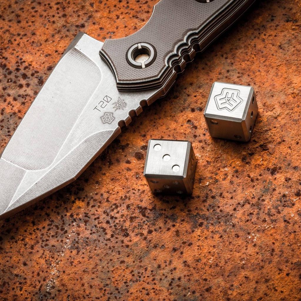 Обои Нож и кубики для игры из металла