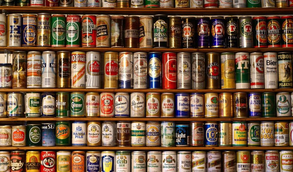 Обои Выставка пивных банок